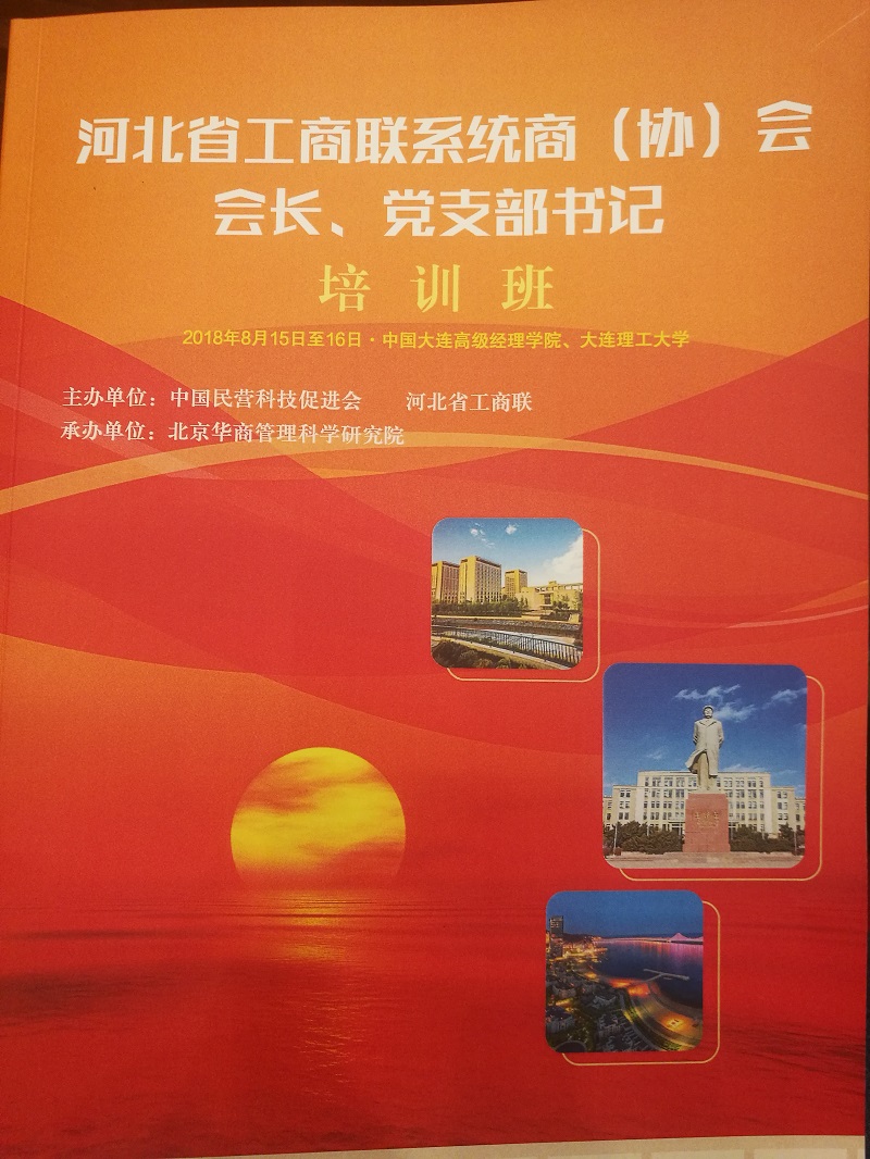8月15日-16日,特美易购董事长徐伟东应邀出席由中国民营科技促进会、河北省工商联主办,北京华商管理科学研究研究承办的《2018年工商联系统商会会长、党支部书记培训班》。