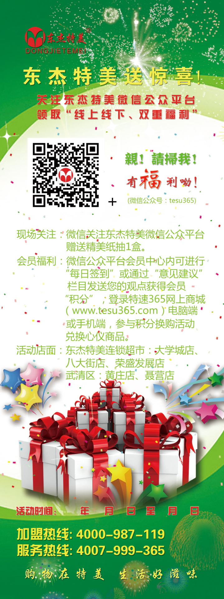 关注东杰特美微信公众平台,领取“线上线下双重福利”!