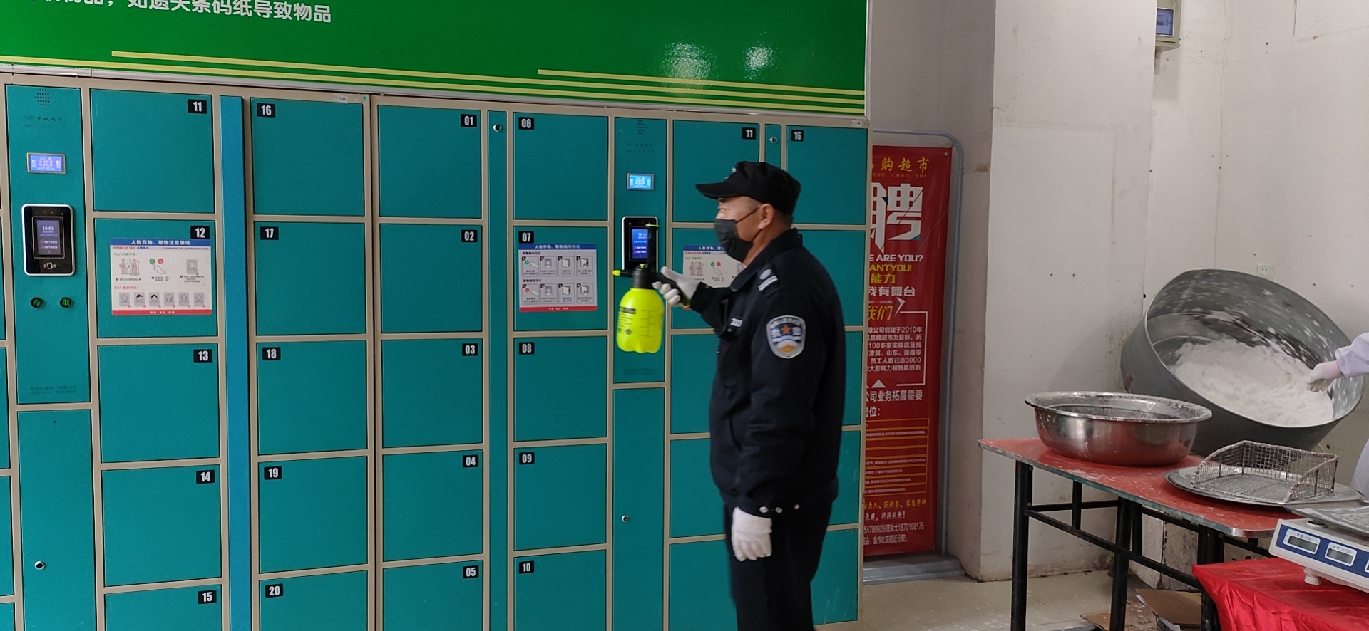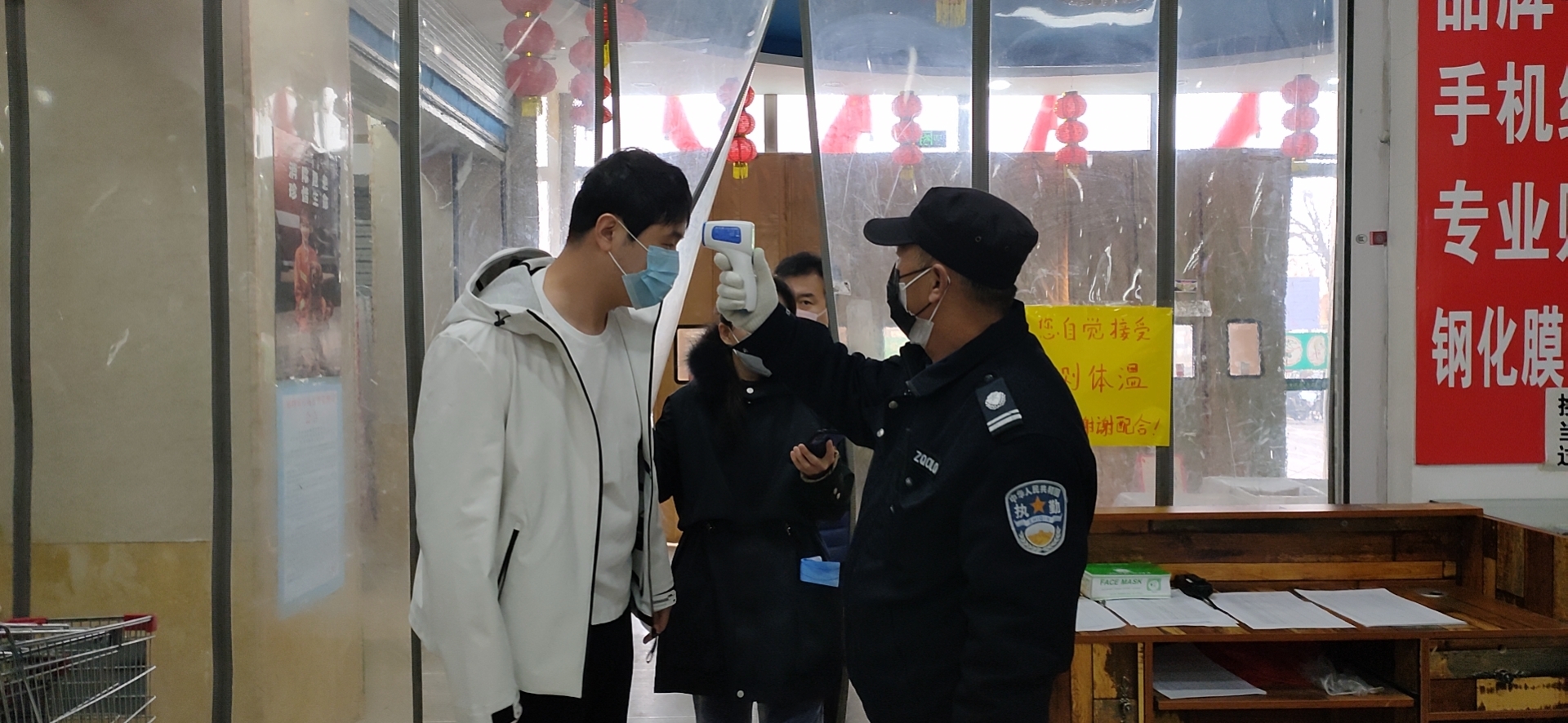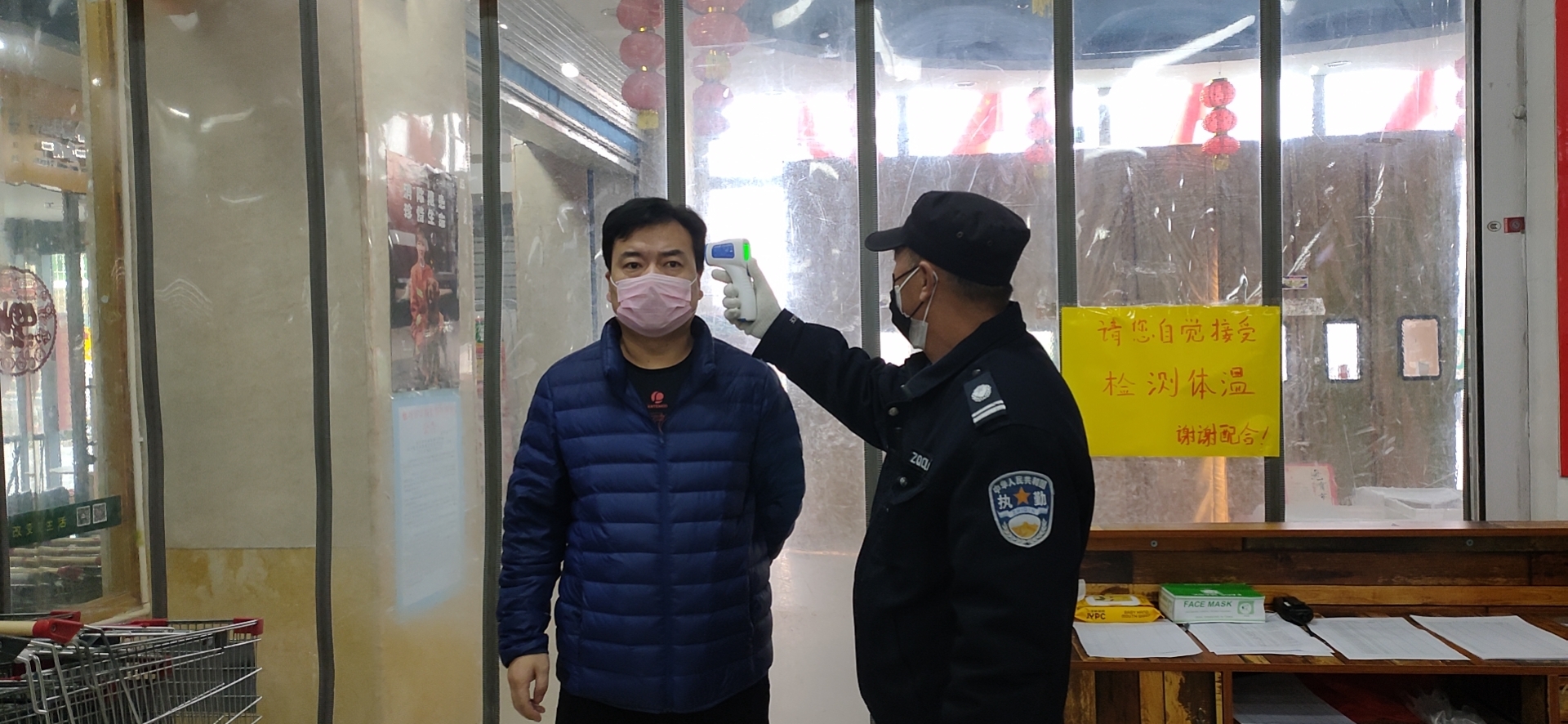 对顾客进行测量体温