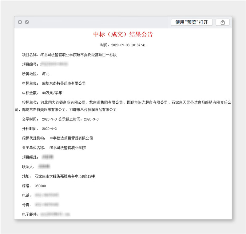 热烈庆祝特美易购成功中标:河北省司法警官营业学院超市委托经营项目!