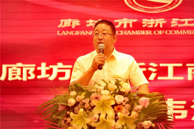 会上,廊坊市民政局副局长李延庆、廊坊市工商联常务副主席王国友讲话。廊坊市浙江商会党支部书记徐伟东、会长周伟江致辞。