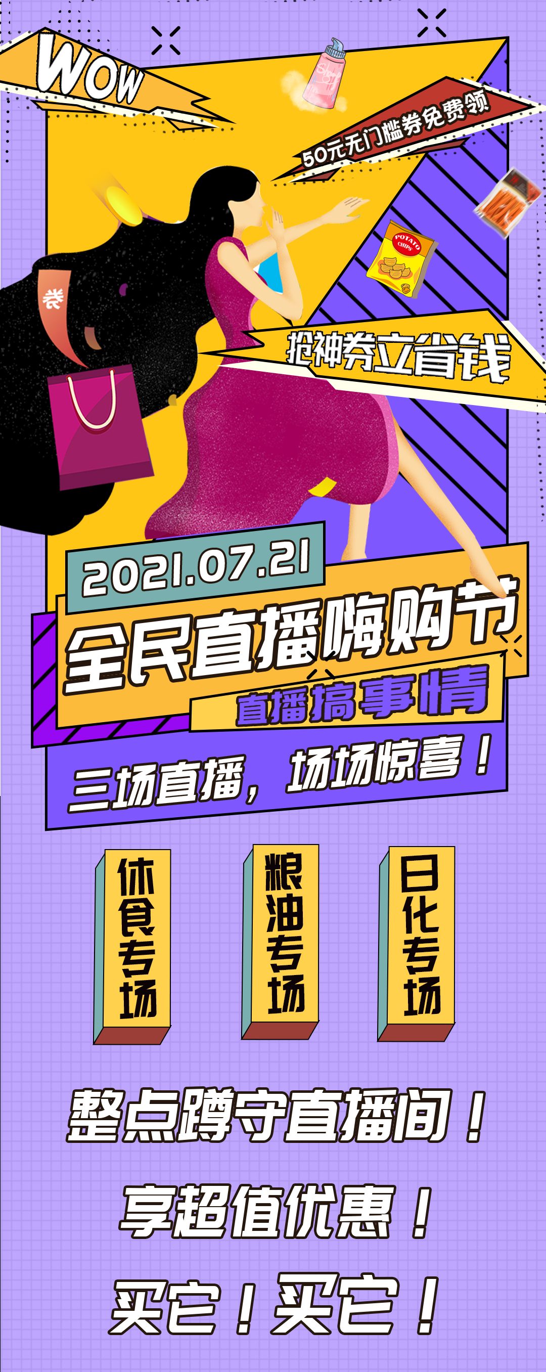 全民直播嗨购节!50元无门槛券免费领!
