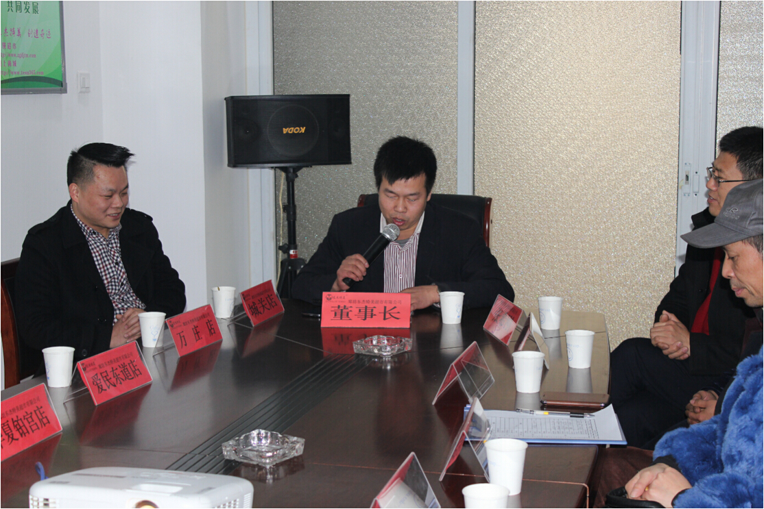 一、首先由东杰特美超市有限公司董事长徐伟东先生致欢迎词,公司主要业务负责人为现场来宾介绍公司业务发展现状与未来规划。