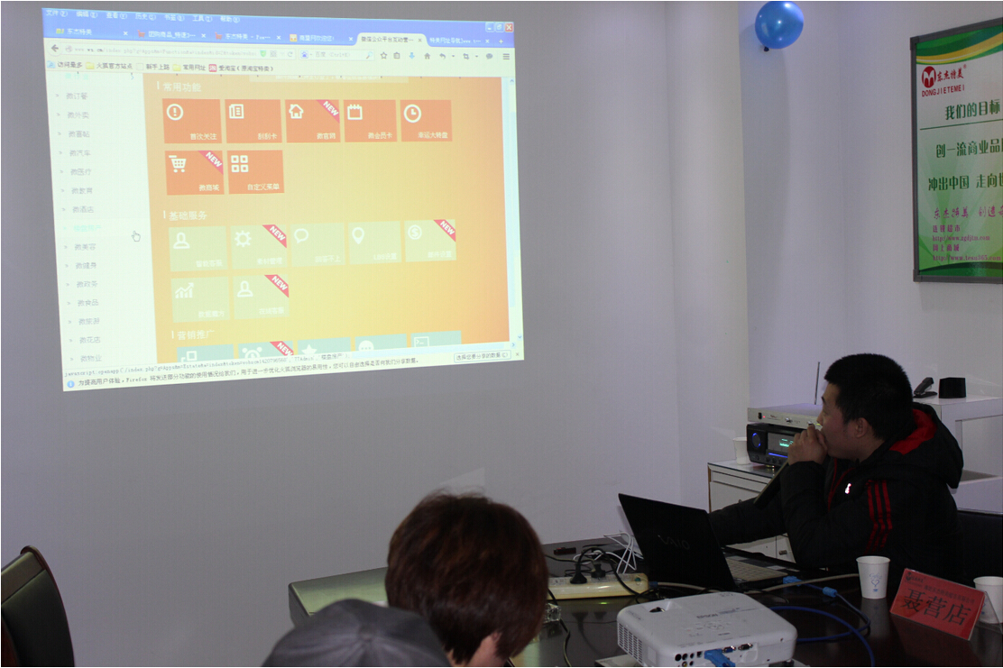 东杰特美技术总监白云,现场展示公司现有平台:官网、特速365网上商城、微信公众平台、商盟网、微商网、特美网址导航等内容。