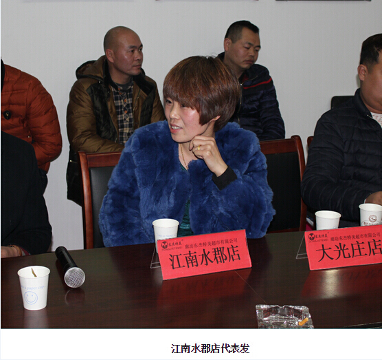 东杰特美超市武清区城关店占坤华经理荣获2014年优秀管理荣誉,图为占坤华经理现场发言,占经理表示荣誉属于团队,个人离不开团队的支持与帮助。