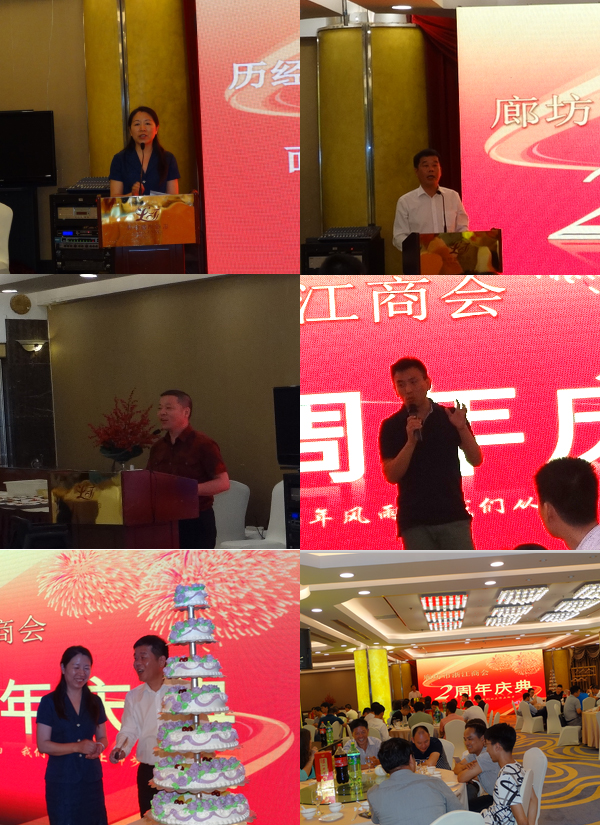 2016年6月18日上午,廊坊市浙江商会成立两周年庆典会议在廊坊市国际饭店“朗逸轩”大厅隆重召开。应邀参加这次会议的领导有:廊坊市工商联陈燕主席、廊坊市民政局李永水科长、廊坊市建设银行融汇支行吴澎行长等。廊坊市浙江商会全体人员参加了会议。出席会议的总计140余人。