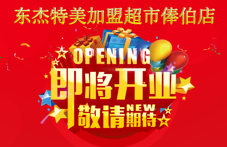东杰特美加盟超市北京俸伯店即将在11月的25日火爆开业,敬请期待!