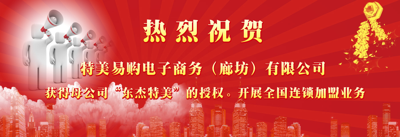 热烈祝贺:特美易购电子商务(廊坊)有限公司获得母公司“东杰特美”的授权。开展全国连锁加盟业务