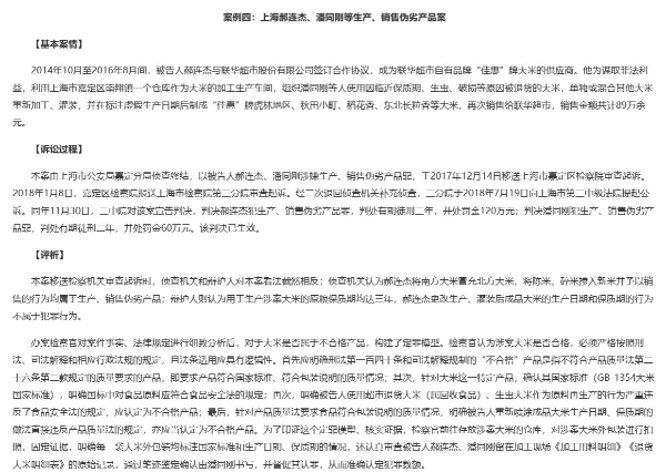 据最高检案情介绍,2014年10月至2016年8月间,联华超市自有品牌“佳惠”牌大米供应商郝连杰与联华超市股份有限公司签订合作协议,他为谋取非法利益,利用上海市嘉定区南翔镇一个仓库作为大米的加工生产车间,组织潘同刚等人使用因临近保质期、生虫、破损等原因被退货的大米,单独或混合其他大米重新加工、灌装,并在标注虚假生产日期后制成“佳惠”牌虎林地区、秋田小町、稻花香、东北长粒香等大米,再次销售给联华超市,销售金额共计89万余元。