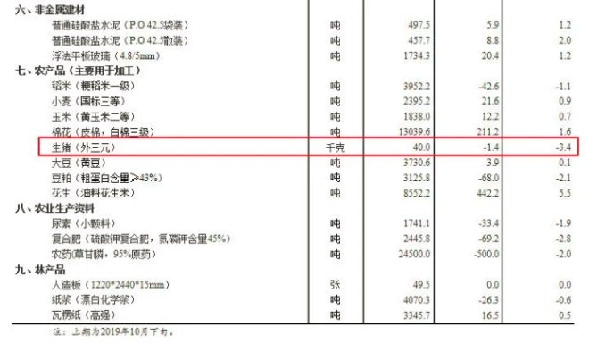 统计局:11月上旬生猪价格环比下跌3.4%至40元每公斤