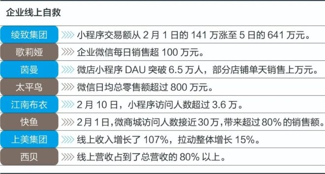 面对危机和巨变,不少企业开始了自救,他们拿起了小程序、微信支付、企业微信、微信群,以及众多腾讯智慧零售武器,把服务和销售转移到了线上。