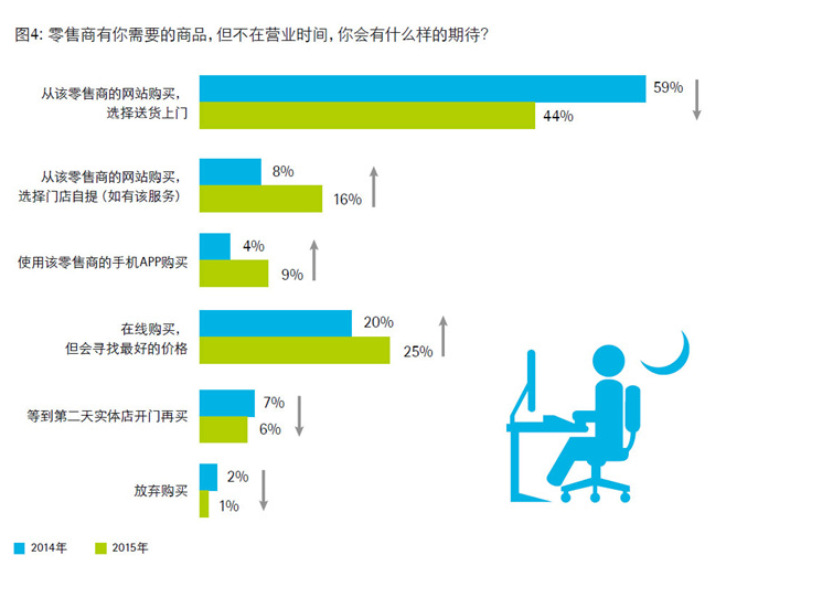我们来看看,如果消费者打算从某一零售商处购买商品,但其门店不在营业时间,他们会有什么样的期待?(见图4)