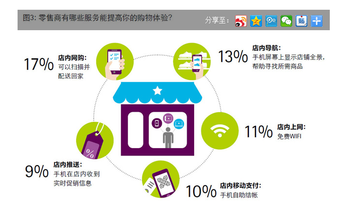 ·在众多移动技术中,零售商在场景化购物方面(店内移动支付、店内导航)的技术投资需要加快步伐;