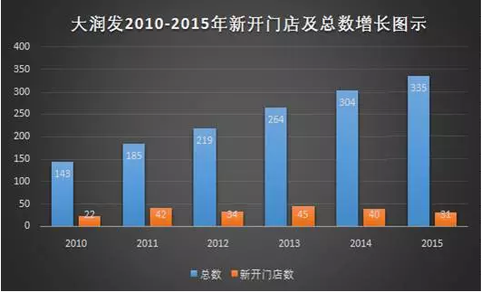 大润发这两年处于爬坡攻坚期,受到中国“L”型经济发展趋势影响,2015年开店数量31家,是上市以来最少的一年。