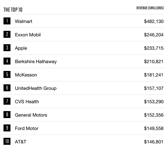 在日前财富发布的这份美国500强企业名单中,除了以4821.3亿美元营收第四次蝉联榜首的沃尔玛之外,苹果也是首次跻身前三甲,并以533.9亿美元成为了榜单中最赚钱的公司。哦对,忘记说了,这份名单是按照营收状况来排名的,所以很自然的,就会出现并未实现盈利的上榜企业,比如说排名388、做油气勘探和开发的阿帕奇公司(Apache Corporation),以231.19亿美元的亏损垫了底。