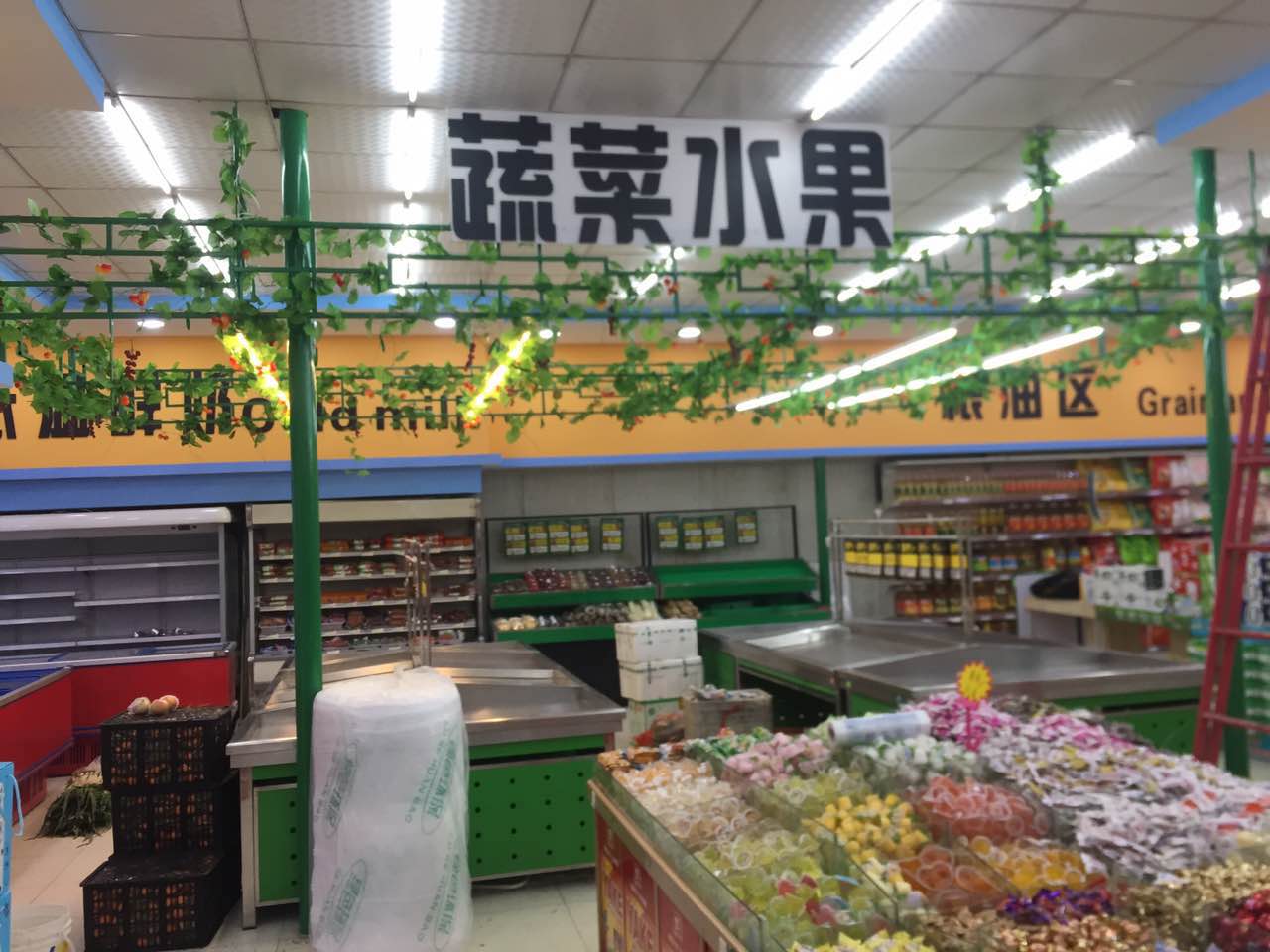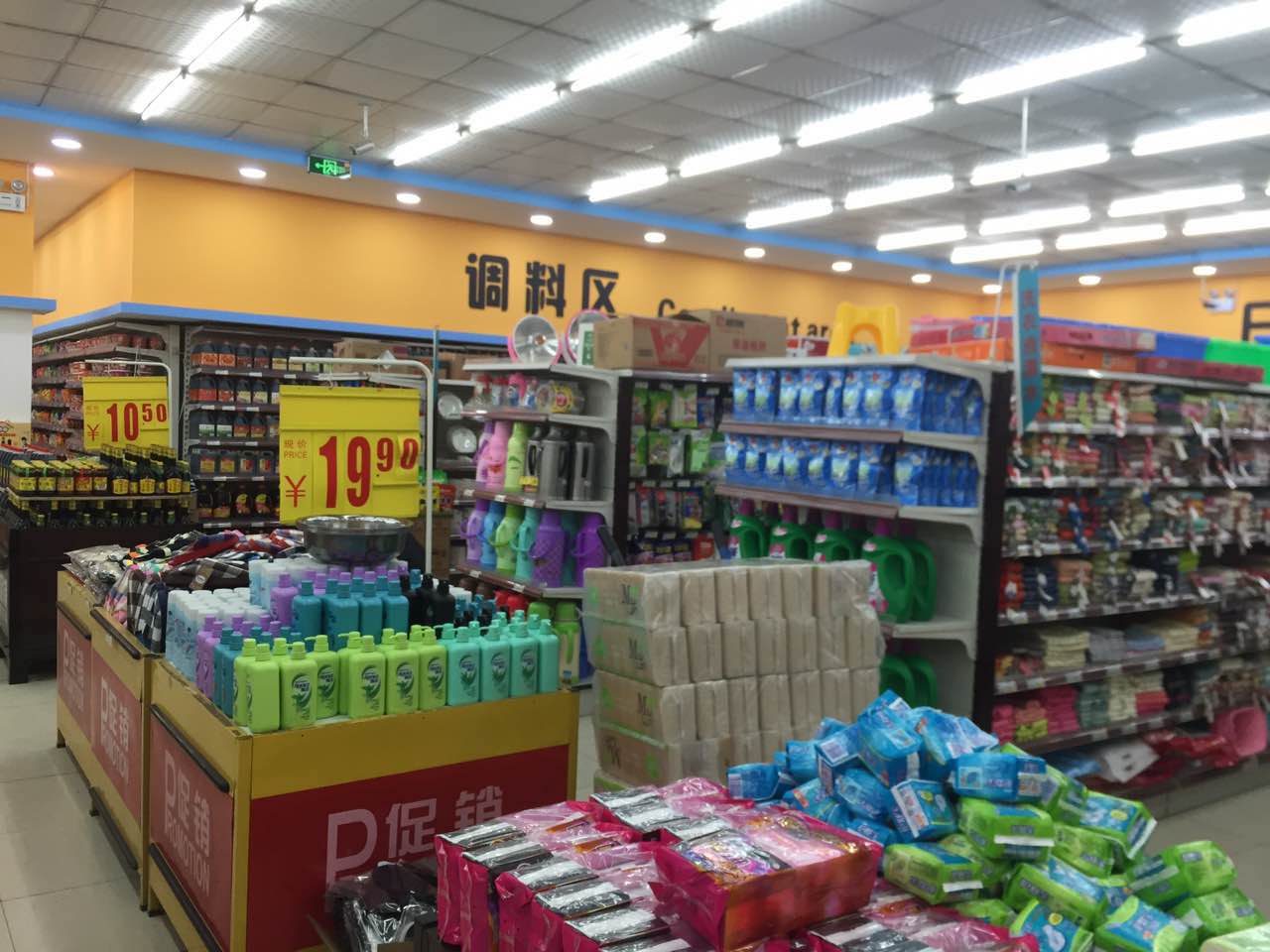 店内设有休闲零食专区、化妆品专区、洗护洗涤专区、酒水饮料专区、厨房调料区、蔬菜水果专区、粮油米面专区等满足大众一切生活所需。