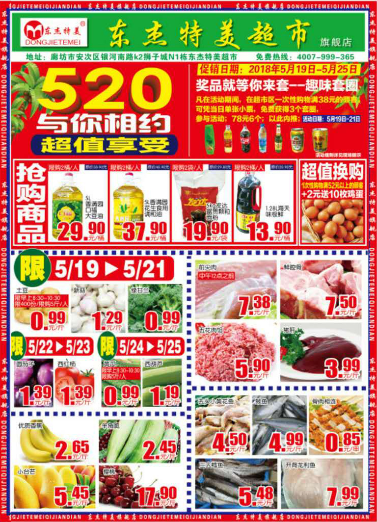 5月19-5月21活动期间,超市区一次性消费满38元的顾客