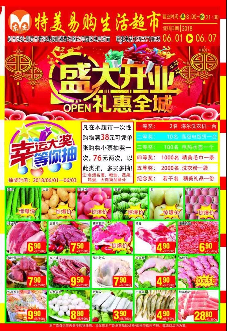 特美易购连锁超市强势入驻香河钱旺镇,6月1日盛大开业,抽奖送大礼~
