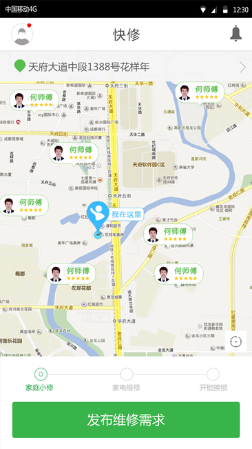 陌邻快修,是一款基于LBS的移动App,专注解决家庭维修难题。无论是开锁换锁、管道疏通、空调维修、油烟机清洗等家庭维修需求,只需打开快 修APP就能查看附近师傅的位置、经验、评价以及相关项目的维修价格,发布需求智能为市民匹配附近的专业师傅快速上门服务。业主也可自主选择专业维修师 傅,自由预约维修时间,最重要的是价格清晰透明,无需现金支付。而且维修师傅的身份全部经过官方验证,人品值得信任,维修技术还很过硬。