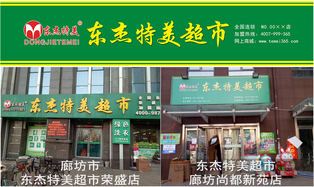 加入我们东杰特美超市之后呢,我们统一了品牌,提升了市场竞争力。由一个不知名的小店转型升级为全国连锁大超市。包括店内外装饰装修全部焕然一新,让人们眼前一亮。