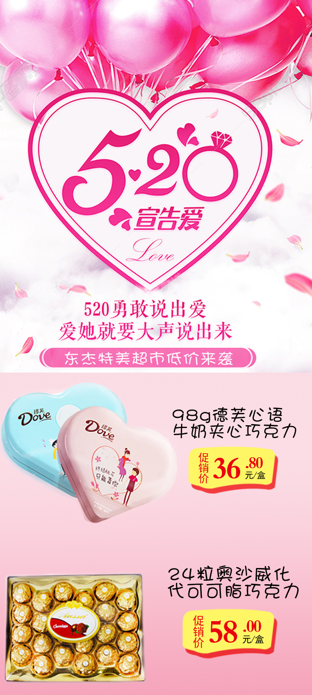 【东杰特美】520,甜甜蜜蜜,爱她就大声说出来 发布时间:2017-05-17 16:16 作者:djtm 来源:DJTM 点击: 字号:大中小 520,甜甜蜜蜜,爱她就大声表白出来吧,东杰特美祝您一臂之力。 更多惊喜点击特美易购官方网站:www.temei365.com 分享到: QQ空间 新浪微博 腾讯微博 人人网 微信 朋友网 更多 上一篇:感恩母亲节,东杰特美超市让利大促销,走进社区,送温暖! 下一篇:成本120元 收购价仅90元 蛋鸡养殖户最近赔了不少钱