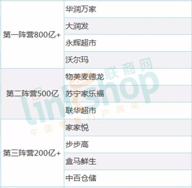 联商专栏:超市行业零售格局基本开始逐步固化,去年看似发生多起并购,但并未挑战第一阵营格局。华润万家、大润发、永辉超市、沃尔玛继续领涨,物美收购麦德龙中国、苏宁拿下家乐福中国都是在抢第二阵营门票。