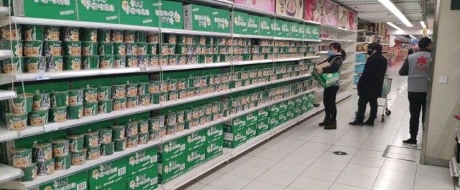 线下,超市货架上被抢购一空,康师傅最不受欢迎的香菇鸡肉面也开始上演“绿色报复”。线上,京东的方便食品成交金额增长3.5倍;天猫方便速食整体销量同比增速接近700%。