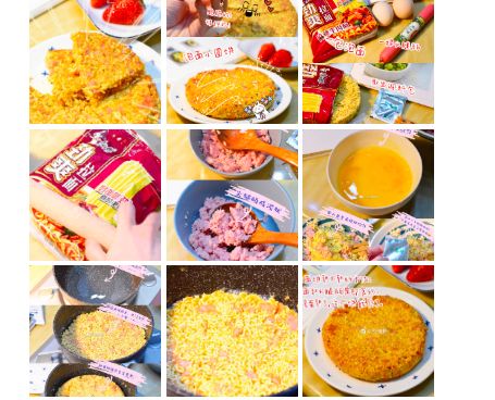 他收藏了方便面百变食谱,牛奶泡菜方便面、鸡蛋火腿肠炒面、鸡蛋午餐肉拌面……确保每天不重样。